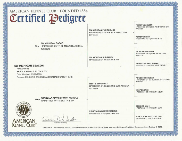 WE DO NOT TAKE PERSONAL CHECKS.WE ONLY TAKE CASH OR POSTAL MONEY ORDERS,ALL BEAGLE PUPS AKC REGISTERED CURRENT SHOTS AND WORMING ,DEW CLAWS REMOVED.