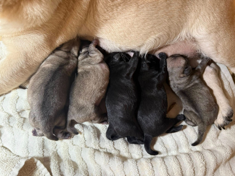 D.O.B. 1-2-2026 DAM; CINDERELA SIR; CASPER 5 PUPS3 MALES 3 FAWN 1BLCK . FEMALES 1 FAWN 1 BLACK . $1,500.